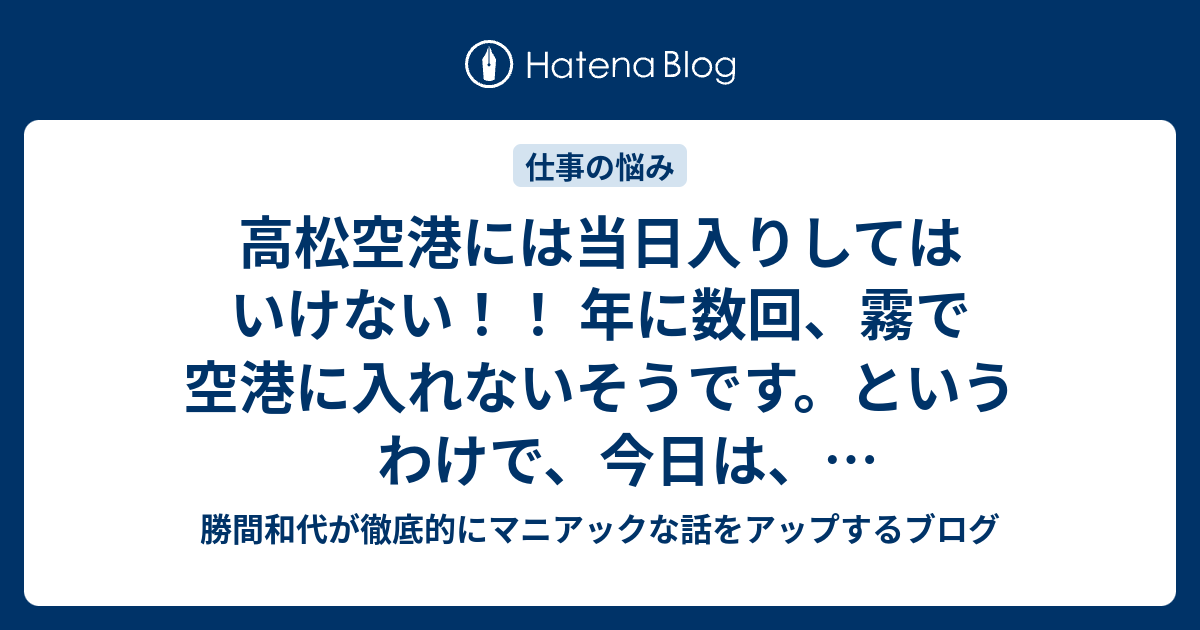 高松空港には当日入りしてはいけない 年に数回 霧で空港に入れないそうです というわけで 今日は 羽田 高松上空待機 伊丹で いま羽田です 勝間和代が徹底的にマニアックな話をアップするブログ